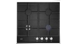 Plaque de cuisson 4 bruleurs en Fonte, 60cm,Verre trempé Noir et aluminium